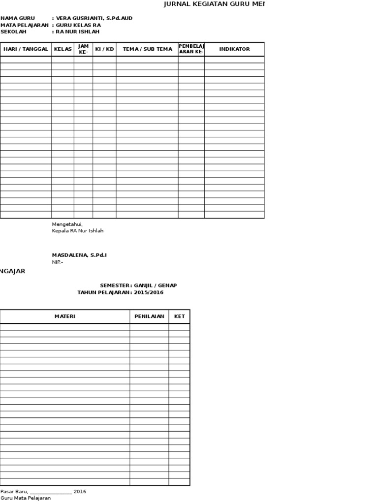 Contoh Jurnal Harian Guru Ra - Contoh Format Jurnal Harian Mengajar Guru Mata Pelajaran Kurikulum 2013 Kurikulum Belajar Guru : Check spelling or type a new query.