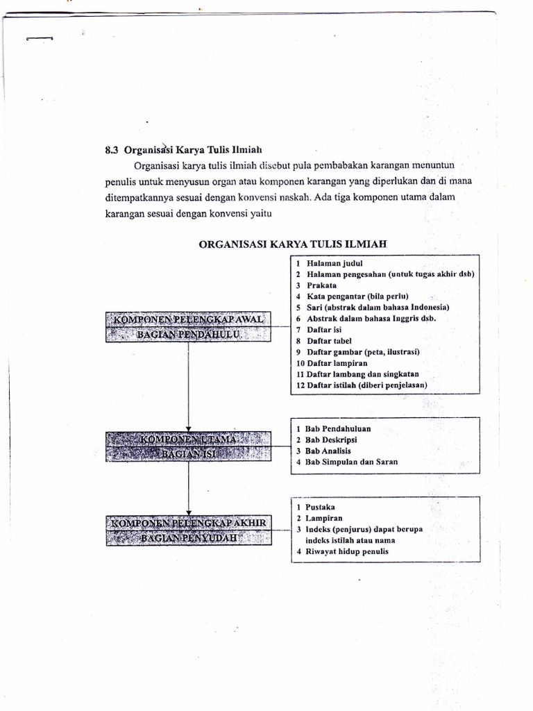 Tehnik penulisan karya ilmiah mencakup, kutipan, catatan kaki, dan daftar pustaka.
