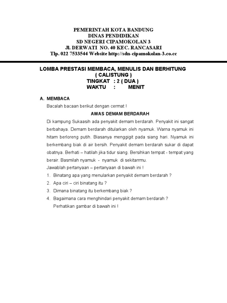 Soal Lomba Calistung Sd Kelas 1 2 3 Tahun 2019 Datadikdasmen Com from 4.bp.blogspot.com Maybe you would like to learn more about one of these? Check spelling or type a new query. We did not find results for: